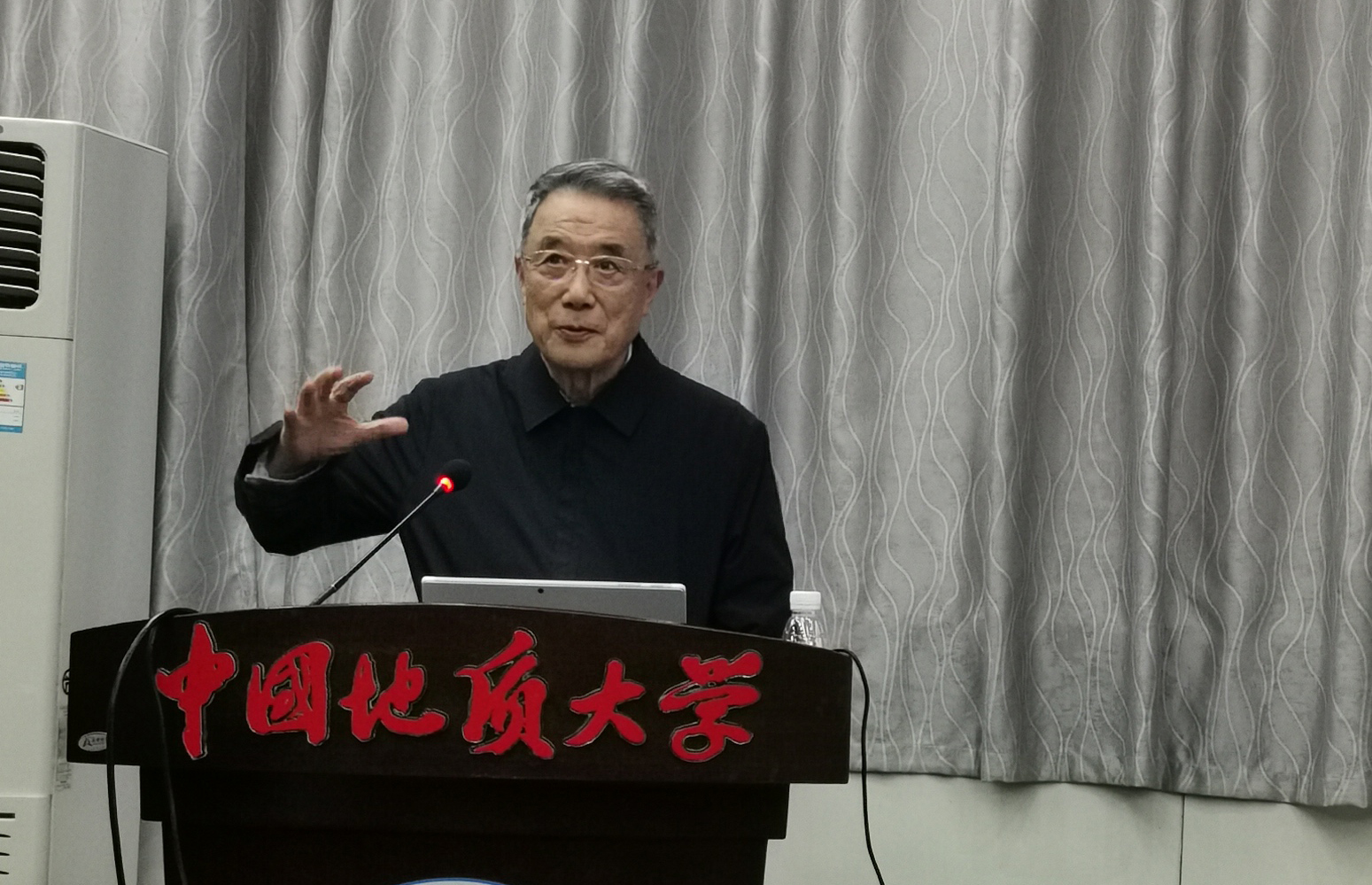 12月23日下午,应地空学院胡祥云教授邀请,中国工程院院士、应用地球物理学家、工程管理学家、国家技术发明一等奖获得者何继善教授来校访问,并在八角楼学术报告厅做了“学习-实际-超越”的学术报告,全校100多位师生到场聆听讲座。