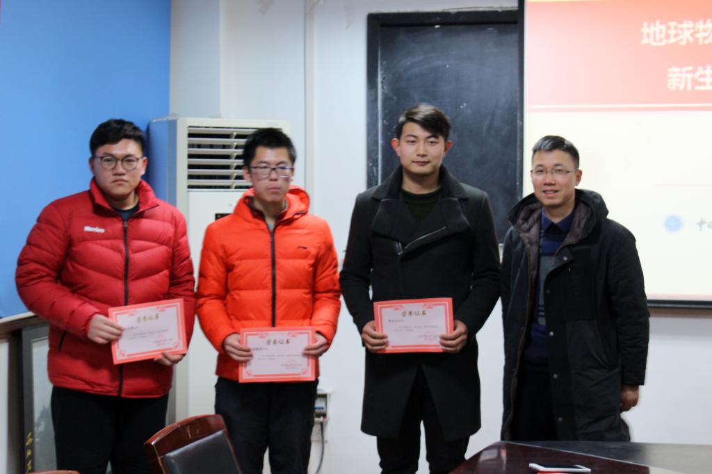 (通讯员张川 摄影祁阳阳)2018年1月5日下午,地空学院在物探楼214召开2017级新生入学奖学金颁奖仪式。武汉中仪物联技术股份有限公司董事长郑洪标、学院党委副书记李周波,辅导员张川、祁阳阳,2017级各班班长、团支书以及10名获奖新生参会。