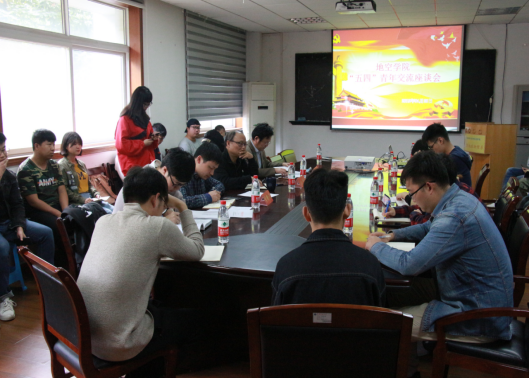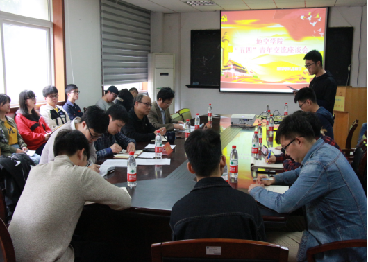 (通讯员张川 摄影祁阳阳)4月30日上午,纪念五四运动100周年大会在人民大会堂举行。中共中央总书记、国家主席、中央军委主席习近平出席大会并发表重要讲话。地空学院组织本期入党积极分子培训班全体学员在物探楼222报告厅集中观看学习,作为一次视频学习的党课内容。共同收看学习后,地空学院学生党支部代表、入党积极分子、学生干部等共30余名代表齐聚物探楼214会议室,共同分享学习体会,交流学习心得。