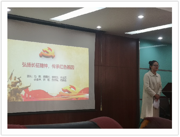 在新中国成立七十周年暨红军长征出发85周年的背景下,064182团支部积极响应国家号召,借由马克思主义学院的宣讲,举行了“弘扬长征精神,传承红色基因”主题团会。通过冯梅同学的讲解、回顾红军长征的视频等方式,我们了解到了长征精神是一种巨大的精神力量。它托起了中华民族的脊梁。我们要做的就是传承这种精神,用中华儿女的智慧和力量,使我们伟大的祖国振兴,繁荣而富强。让我们在这样的时代背景下,秉承先烈之意志,高举红色的火炬,教育好下一辈,继往开来,走完先辈们没有走完的路,走我们这代人特有的路!为中华民族的伟大复兴而坚强自立,为建设新时代中国特色社会主义道路发光发热。