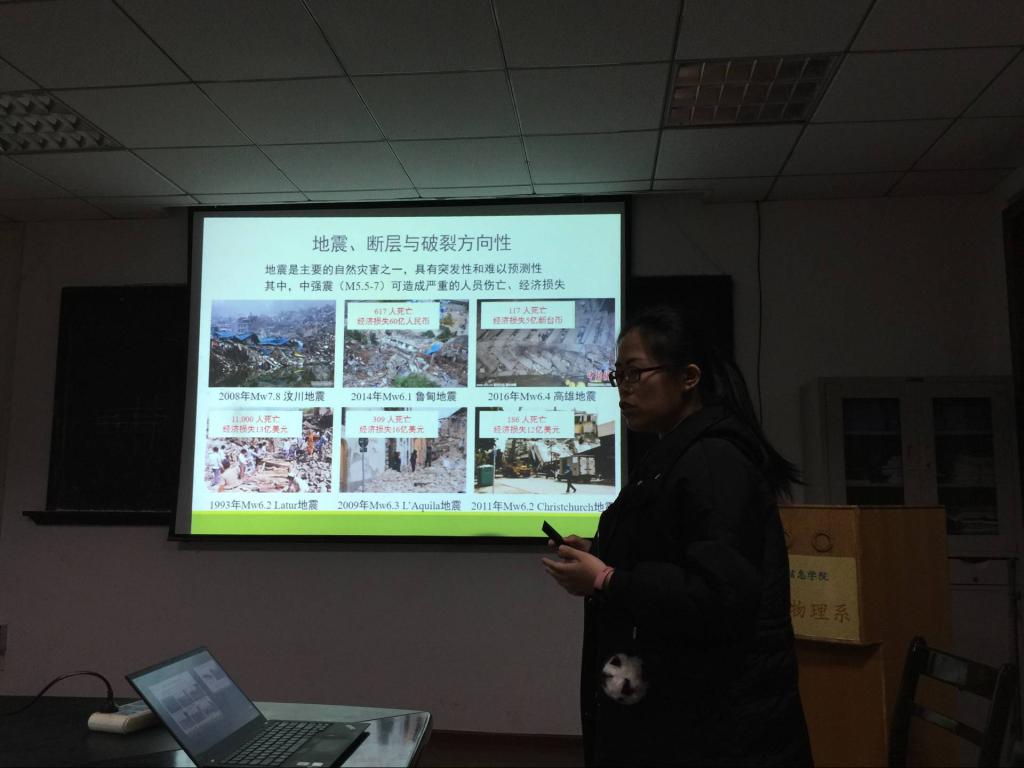 报告结束后,与会的师生与何骁慧博士针对破裂方向性的理论、方法的适用性、以及对于发震构造方面的研究进行了热烈的讨论,并针对存在的问题,提出了进一步深入研究和合作的设想。