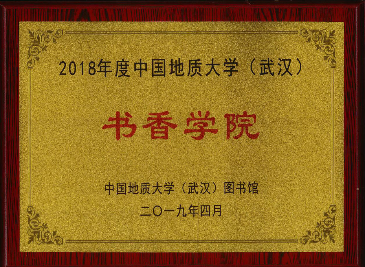 在中国地质大学图书馆举办的“书香学院”评选活动中,我院师生进馆人次及借书量位列全校前五,被评为“2018年度书香学院”。