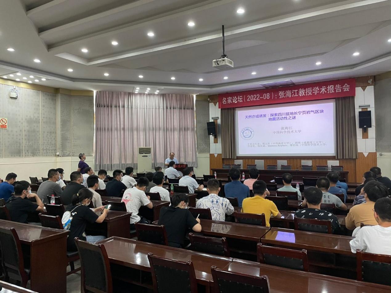 报告后的讨论环节,张海江教授与在场的师生就地震预报的可行性,先存断层对诱发地震的影响,以及非双力偶对反演的影响等问题进行了讨论,并对应力场反演,库伦应力反演等技术细节进行了更详细的解答。
