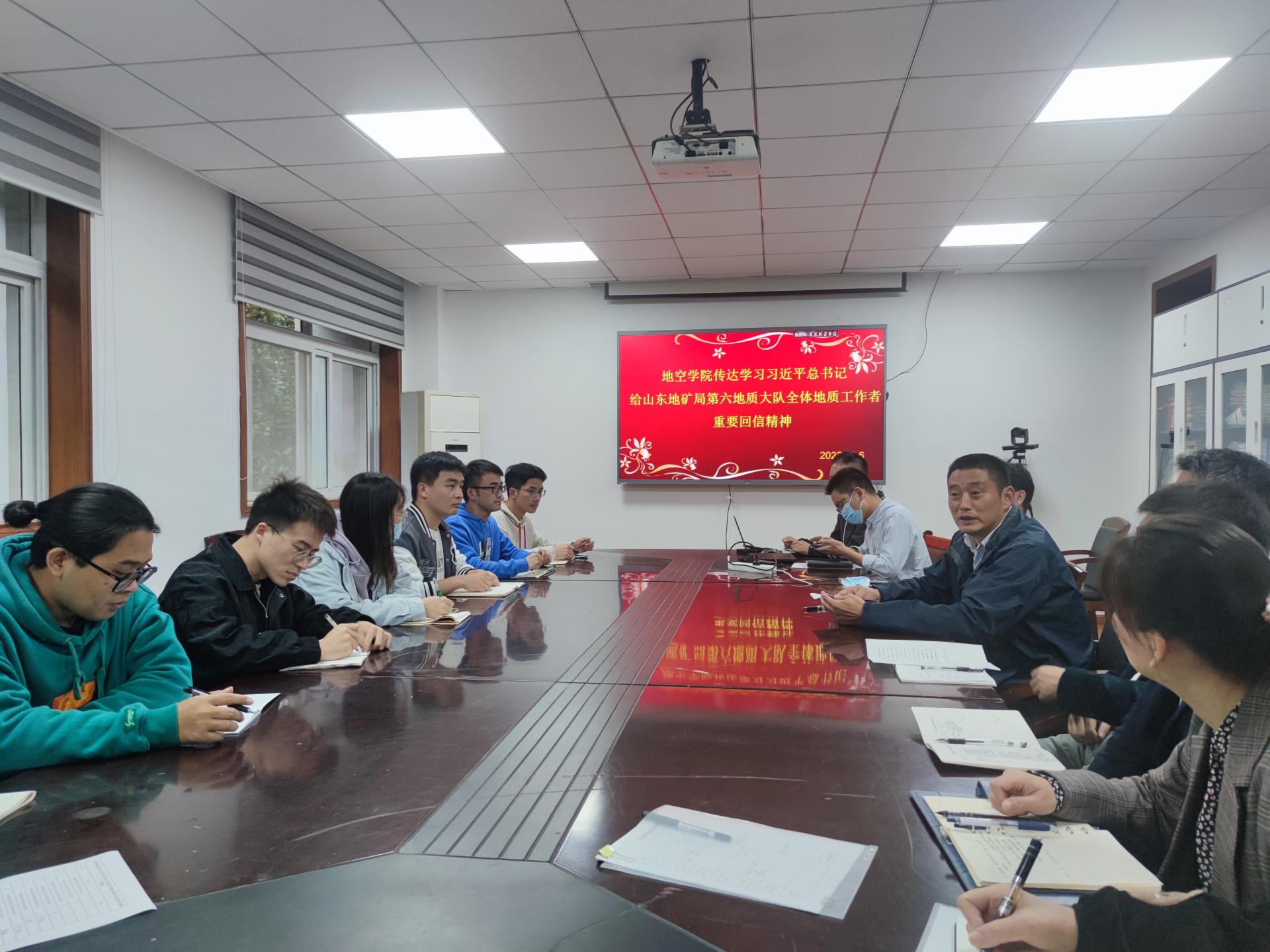 10月6日下午,地空学院组织召开全院党支部书记会议,传达学习习近平总书记给山东省地矿局第六地质大队全体地质工作者重要回信精神。全体党支部书记参加学习讨论,党委书记马彦周主持会议。