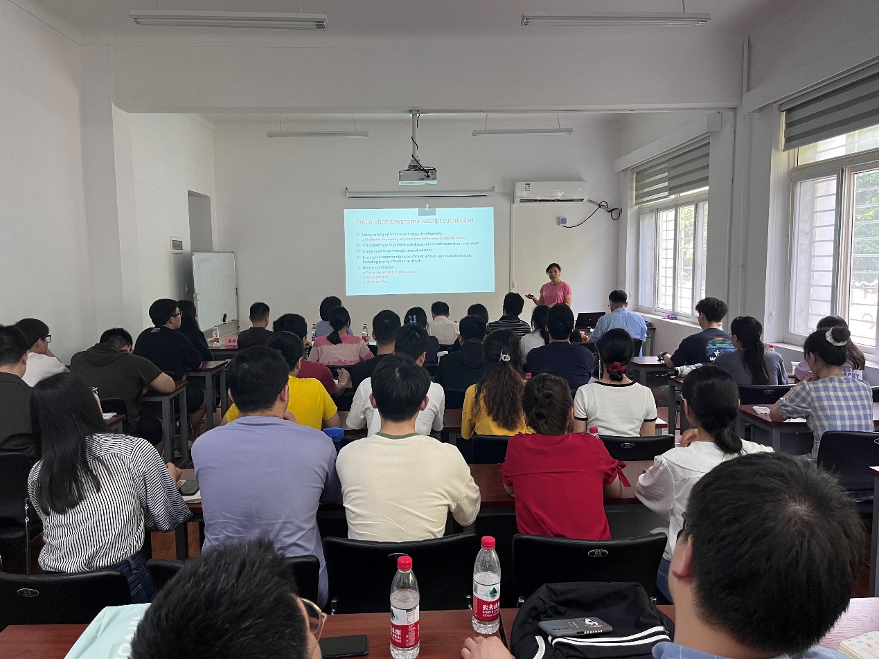 报告后的讨论环节,贾秀萍老师与在场的师生进行了热烈广泛的交流,并就写作时如何分配论文内容、怎样回复审稿意见等进行讨论并给出建议,现场氛围十分活跃。