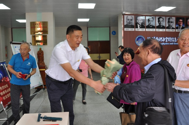 10月10日上午,“庆祝中国地质大学物探65级同学入学60周年大会”在地空学院222报告厅举行。会前学校党委副书记王甫代表学校来到物探楼前亲切看望聚会老校友及他们的家属。学院为每位老校友和家属送上一束鲜花,表达学院师生对为国家地球物理勘探事业发展做出贡献的老校友的崇敬。大会由65级校友何定一主持。
