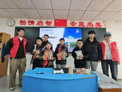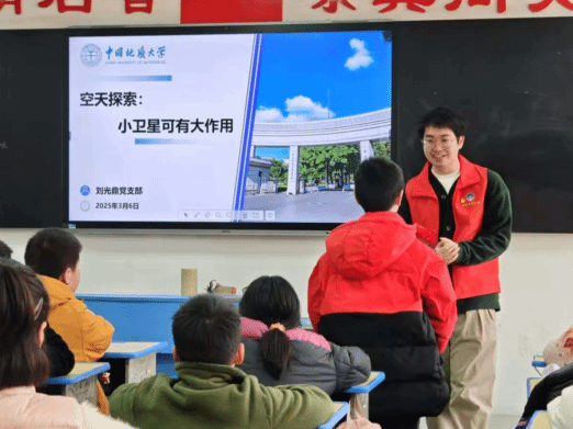 (通讯员 胡林兵)3月6日,地空学院刘光鼎党支部星空筑梦科学家精神宣讲团走进地大附小五年级一班,以"探索地球奥秘·解码卫星科技"为主题,通过沉浸式科普讲座,在青少年心中播撒下科学的种子。宣讲团成员黄润林、胡林兵、张志轩、陈宇硕参与了此次科普活动。